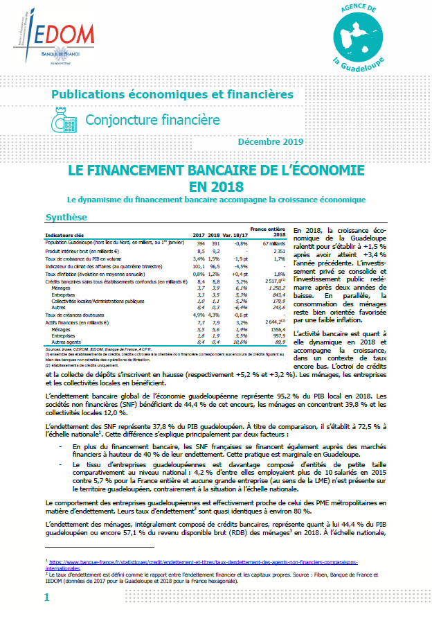 - Le financement bancaire de l’économie en Guadeloupe en 2018