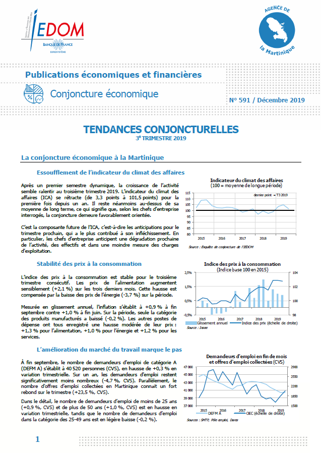 Après un premier semestre dynamique, la croissance de l’activité semble ralentir au troisième trimestre 2019. L’indicateur du climat des affaires (ICA) se rétracte (de 3,3 points à 101,5 points) pour la première fois depuis un an. Il reste néanmoins au-dessus de sa moyenne de long terme, ce qui signifie que, selon les chefs d’entreprise interrogés, la conjoncture demeure favorablement orientée.